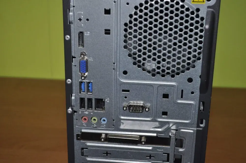 - Порти: 4x USB 2.0, 2x USB 3.0, 1x VGA, 1x COM-порт, 1x DisplayPort, 5x Audio, 1x LAN (RJ-45), 1x Card Reader