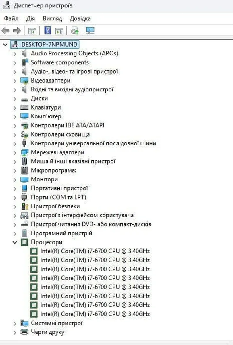 - Процесор: Intel Core i7-6700 (4 (8) ядра з тактовою частотою 3,4–4,0 ГГц), 8 МБ Smart Cache