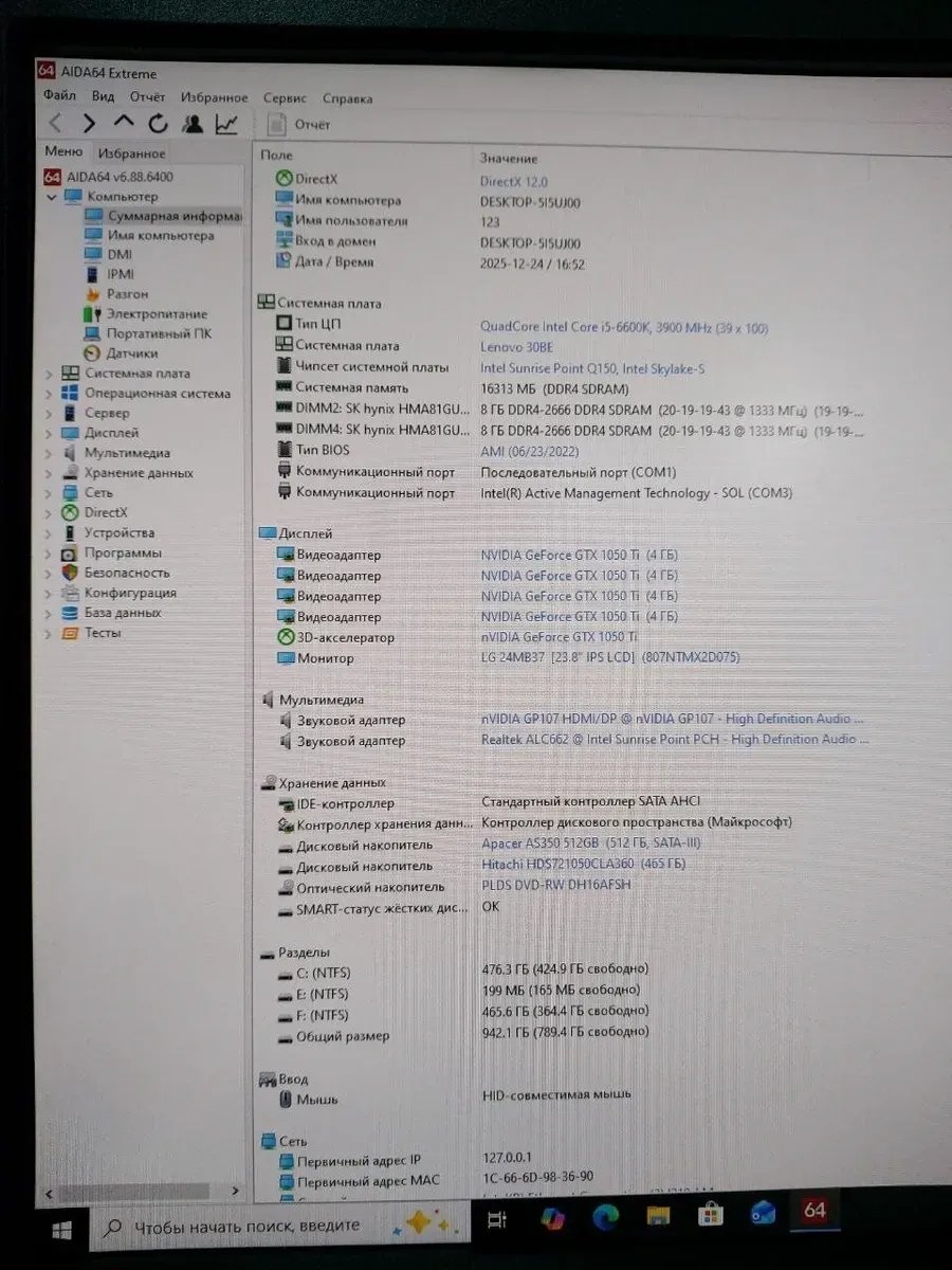 Комп'ютер Lenovo ThinkCentre M800 Tower на базі процесора Intel Core i5-6600K і дискретної відеокарти nVidia GeForce GTX 1050 Ti 4 GB для офісної роботи та домашніх завдань