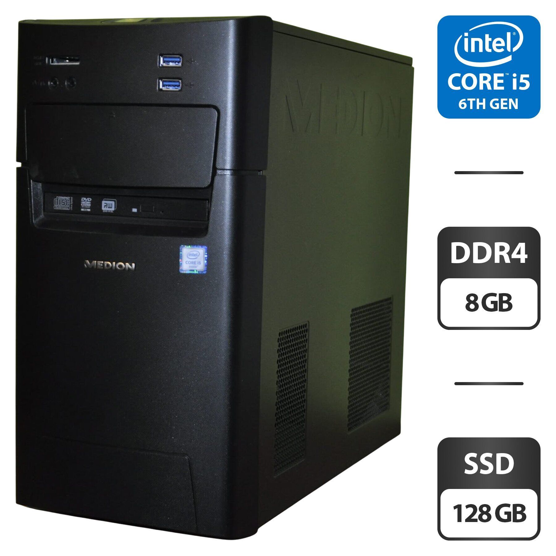 Комп'ютер Medion Akoya P5360 E-MT22 Tower / Intel Core i5-6402P (4 ядра по 2,8 - 3,4 ГГц) / 8 ГБ DDR4 / 128 ГБ SSD / Intel HD Graphics 510 / DVD-ROM / Windows 11 Home б/в