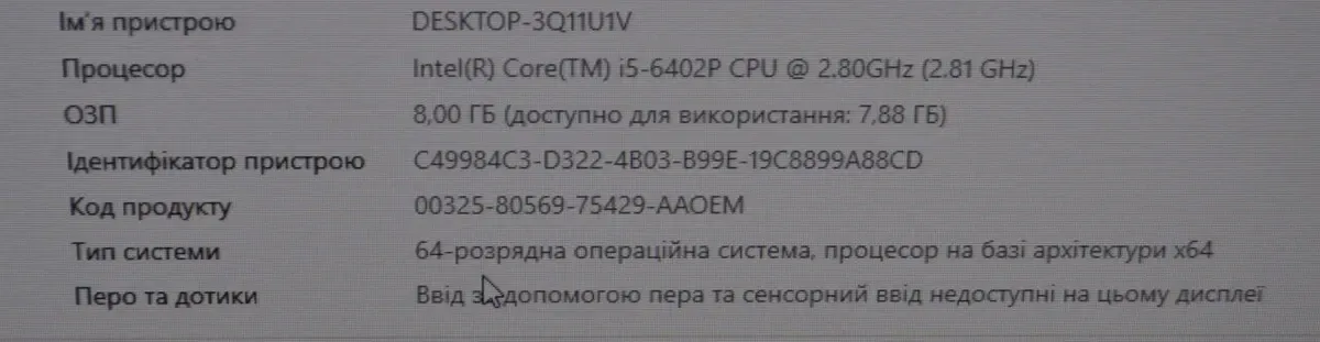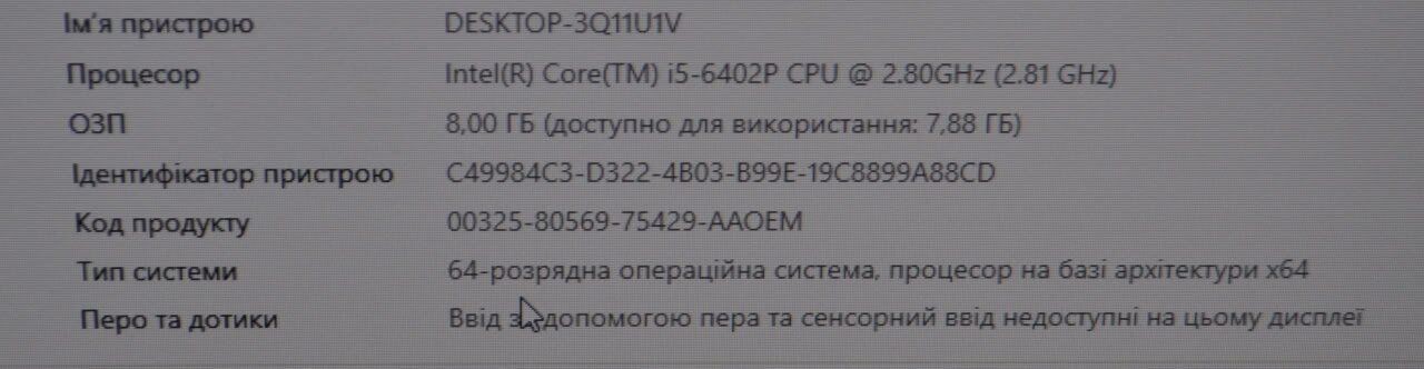 - Процесор: Intel Core i5-6402P (4 ядра по 2,8 - 3,4 ГГц), 6 МБ кеш-пам'яті