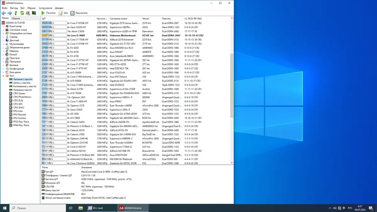 - Процесор: Intel Core i5-9600 (6 ядер по 3.1 - 4.6 GHz), 9 MB Smart Cache
