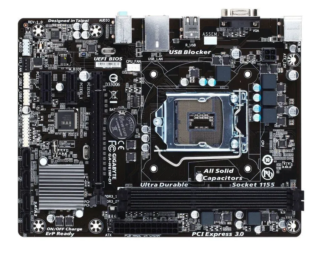 Материнська плата Gigabyte GA-H61M-D1 / Socket LGA1155 / ОЕМ Bulk