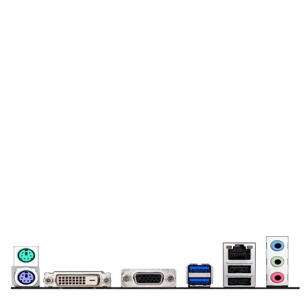 - Порти: 2x USB 3.0, 2x USB 2.0, 2x PS/2, 1x VGA, 1x DVI, 1x LAN (RJ-45), 3x Audio