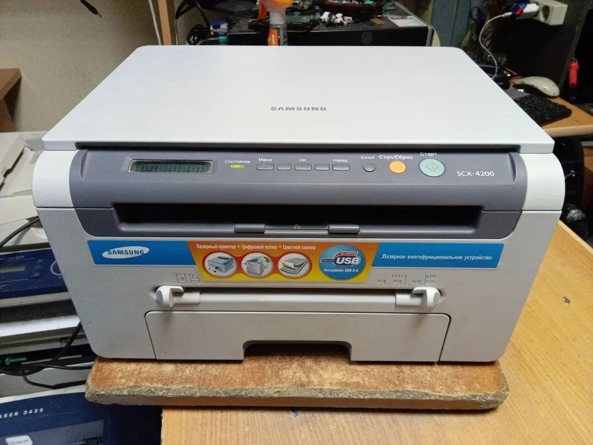 Лазерне монохромне МФУ Samsung SCX-4200 з роздільною здатністю друку 600x600 dpi форматом паперу A4 та швидкістю друку до 18 стор/хв для друку текстових документів та зображень