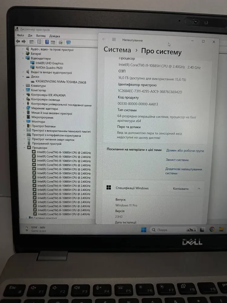 - Процесор: Intel Core i9-10885H (8 (16) ядра по 2.4 - 5.3 GHz), 16 MB Smart Cache