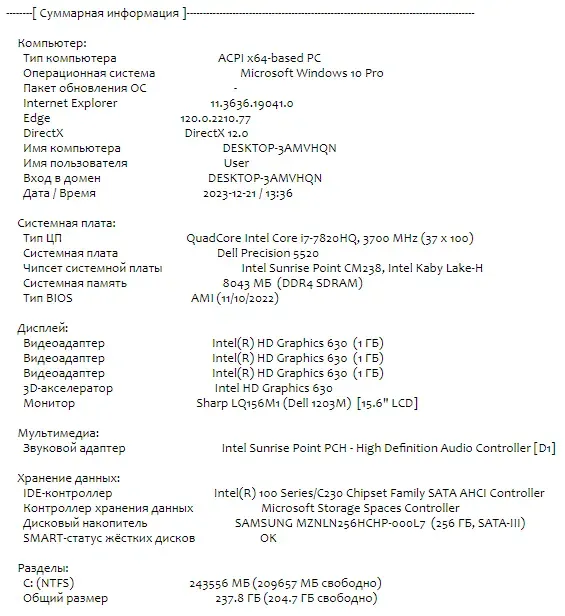 - Модель: Dell Precision 5520