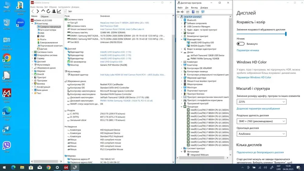 - Графіка: дискретна nVidia Quadro T1000, 4 GB GDDR5, 128-bit
