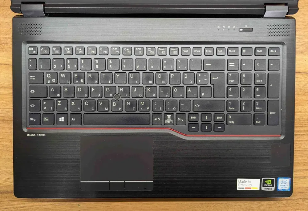 Мобільна робоча станція Б-клас Fujitsu Celsius H780 з екраном 15.6" (1920x1080) IPS на базі процесора Intel Core i7-8750H та оперативною пам'яттю 32 GB DDR4, оснащений дискретною відеокартою nVidia Quadro P600 4 GB для роботи з графікою та складних завдань.