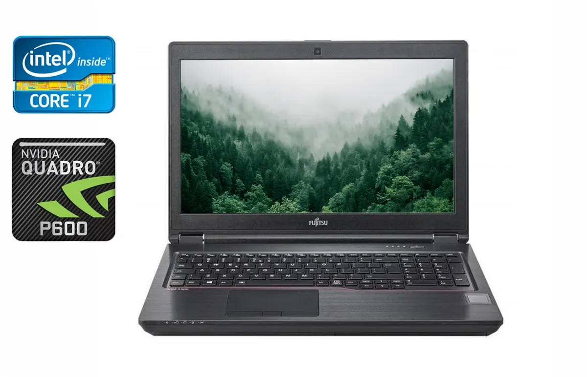 Мобільна робоча станція Б-клас Fujitsu Celsius H780 з екраном 15.6" (1920x1080) IPS на базі процесора Intel Core i7-8750H та оперативною пам'яттю 32 GB DDR4, оснащений дискретною відеокартою nVidia Quadro P600 4 GB для роботи з графікою та складних завдань.