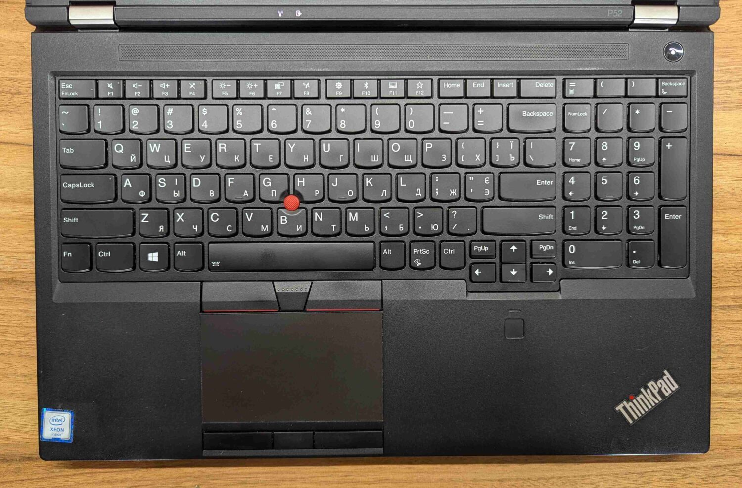 Мобільна робоча станція Б-клас Lenovo ThinkPad P52 з екраном 15.6" (1920x1080) IPS на базі процесора Intel Xeon E-2176M та оперативною пам'яттю 32 GB DDR4, оснащений дискретною відеокартою nVidia Quadro P2000 4 GB для роботи з графікою та складних завдань.