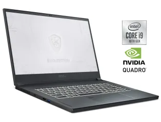 Мобільна робоча станція Б-клас MSI WS66 10TKT / 15.6" (1920x1080) IPS Touch / Intel Core i9-10980HK (8 (16) ядер по 2.4 - 5.3 GHz) / 16 GB DDR4 / 512 GB SSD NVMe / nVidia Quadro RTX 3000, 6 GB GDDR6, 192-bit / WebCam б/в