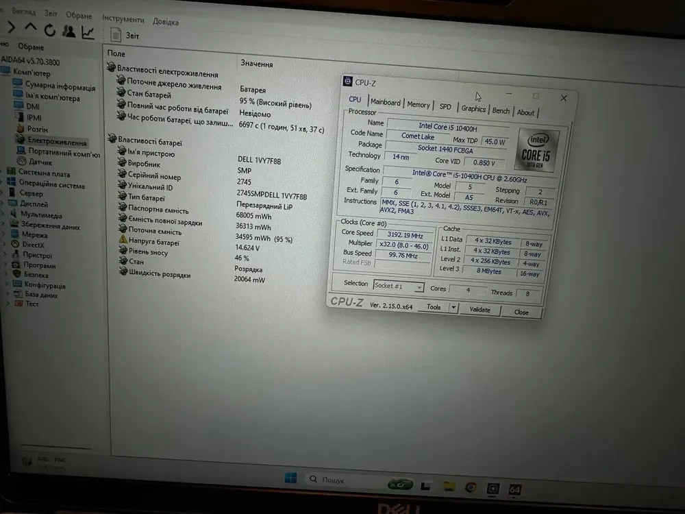 - Процесор: Intel Core i5-10400H (4 (8) ядра по 2.6 - 4.6 GHz), 8 MB Smart Cache