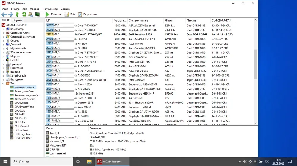 - Процесор: Intel Core i7-7700HQ (4 (8) ядра по 2.8 - 3.8 GHz), 6 MB Smart Cache