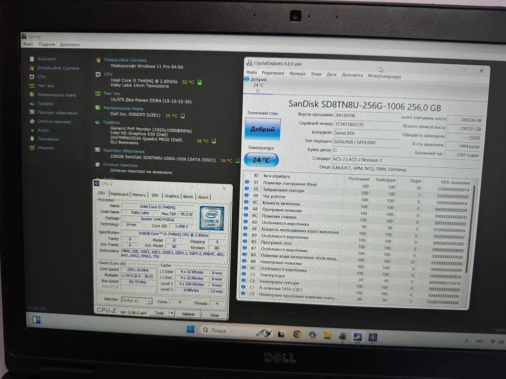 - Процесор: Intel Core i5-7440HQ (4 ядра по 2.8 - 3.8 GHz), 6 MB