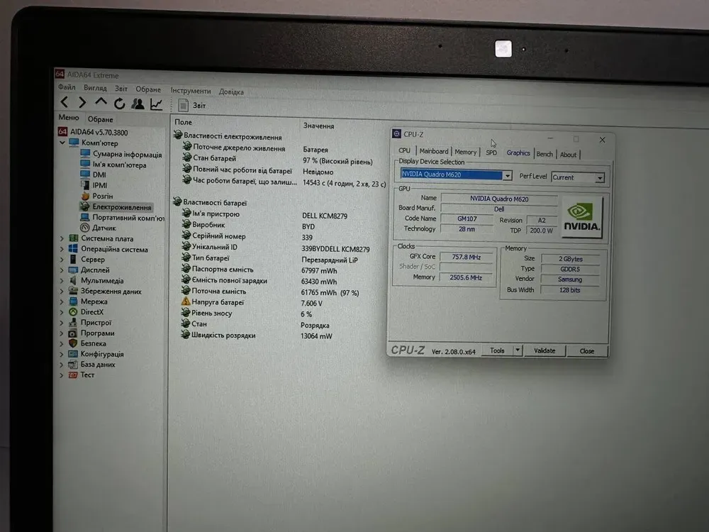 - Графіка: дискретна nVidia Quadro M620, 2 GB GDDR5, 128-bit; інтегрована Intel HD Graphics 630 (до 1792 MB з ОЗП)