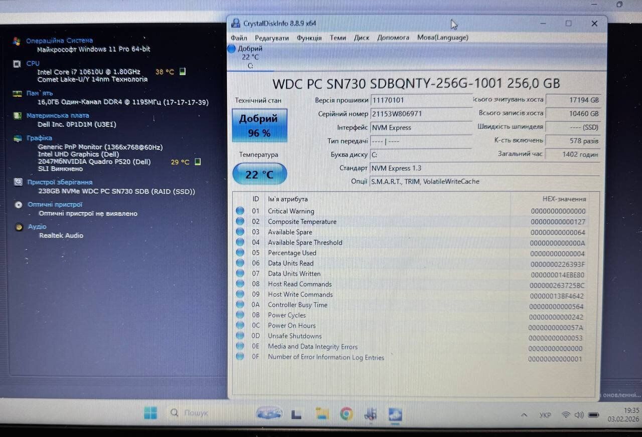 - Модель: Dell Precision 3550