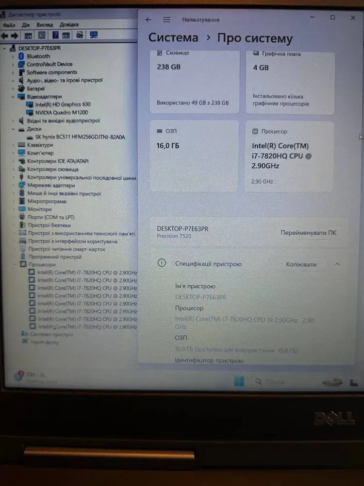 - Модель: Dell Precision 7520