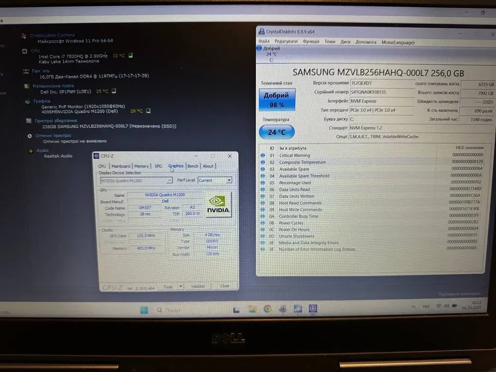 - Графіка: дискретна nVidia Quadro M1200, 4 GB GDDR5, 256-bit