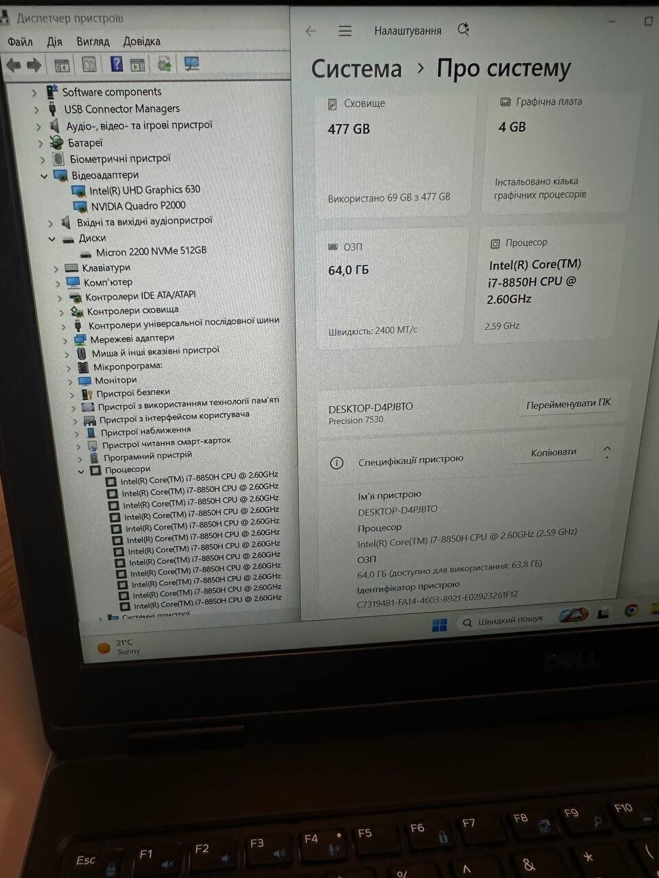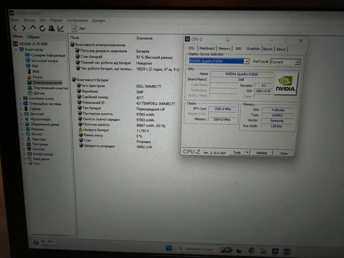 - Графіка: дискретна nVidia Quadro P2000, 4 GB GDDR5, 128-bit; інтегрована Intel UHD Graphics 630 (до 1792 MB з ОЗП)