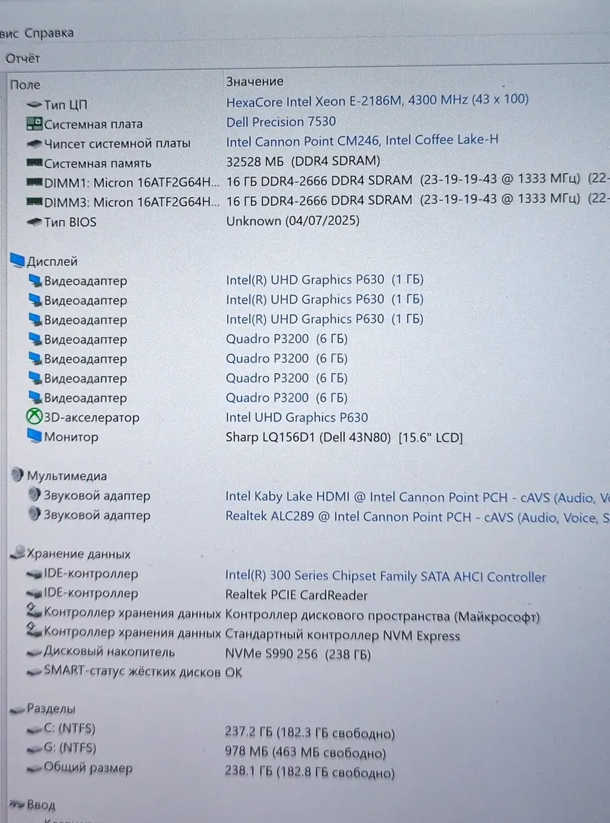 - Модель: Dell Precision 7530