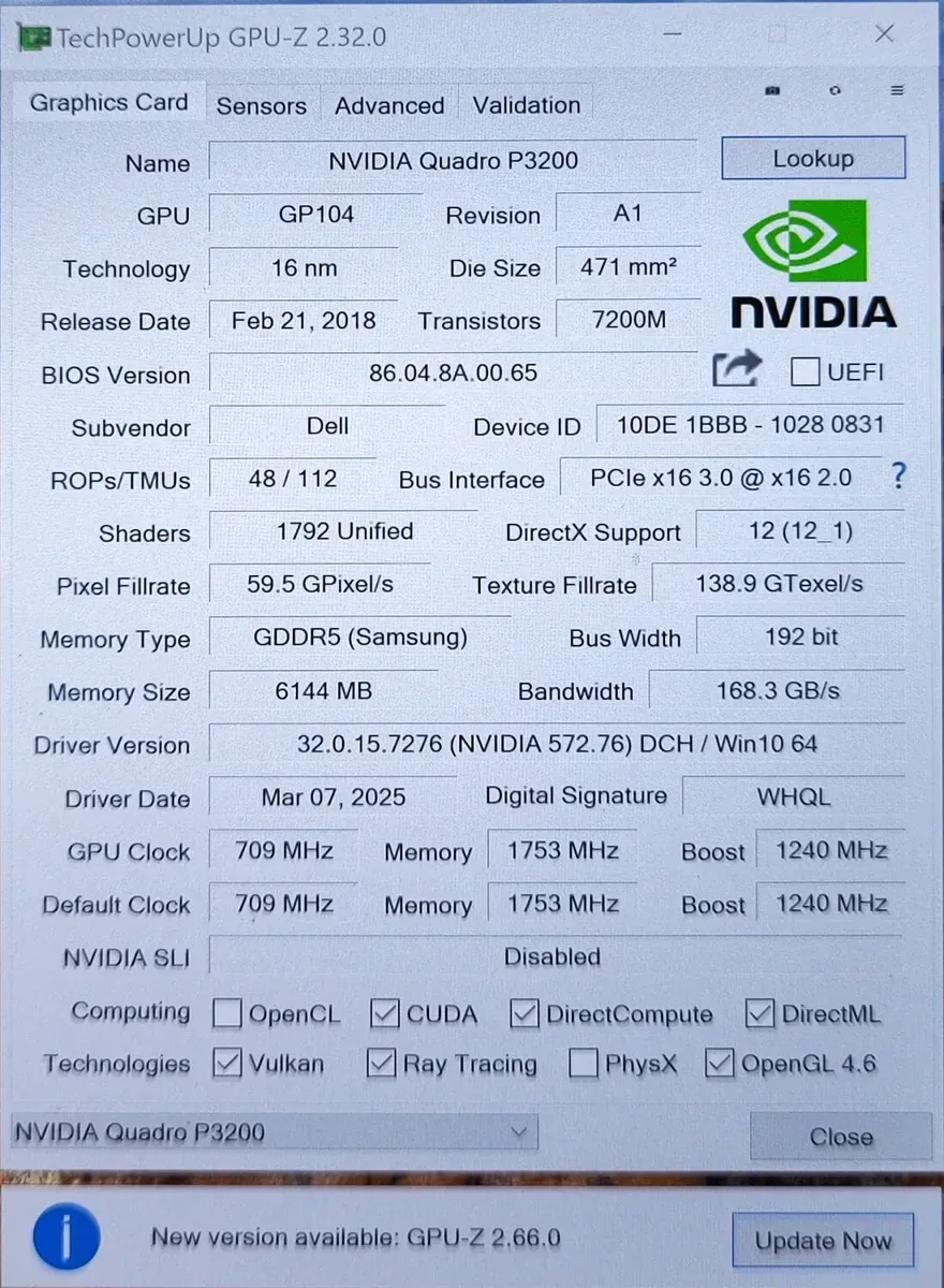 Дискретна відеокарта:Quadro P3200