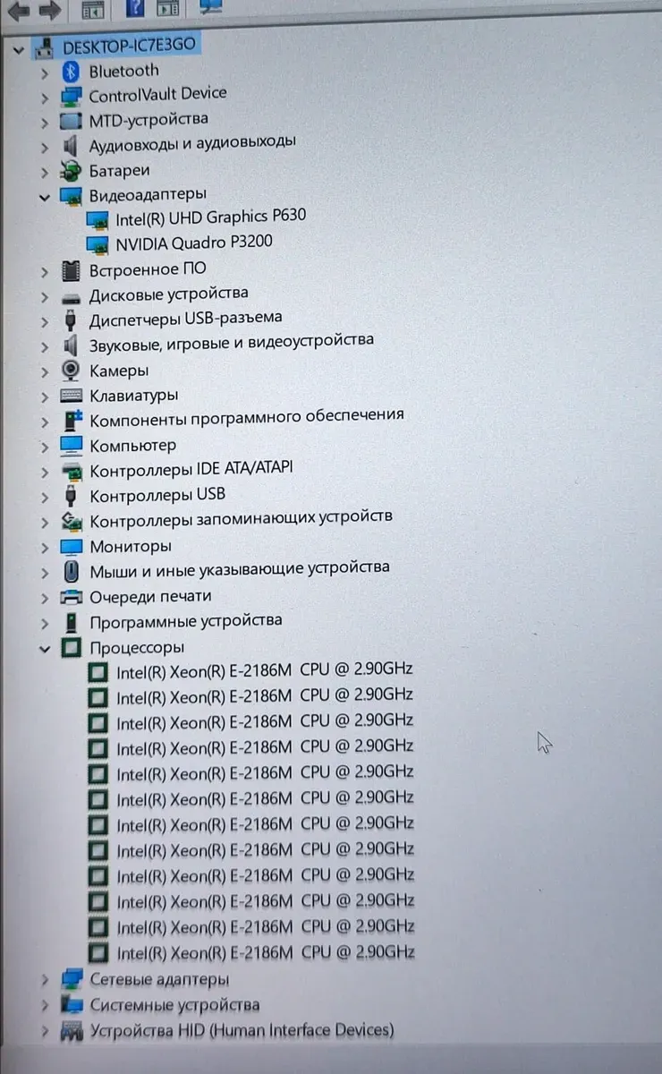 - Процесор: Intel Xeon E-2186M (6 (12) ядер по 2,9 - 4,8 ГГц), 12 МБ Smart Cache