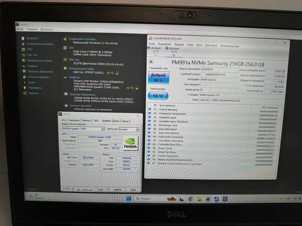 - Графіка: дискретна nVidia Quadro T1000, 4 GB GDDR6, 128-bit