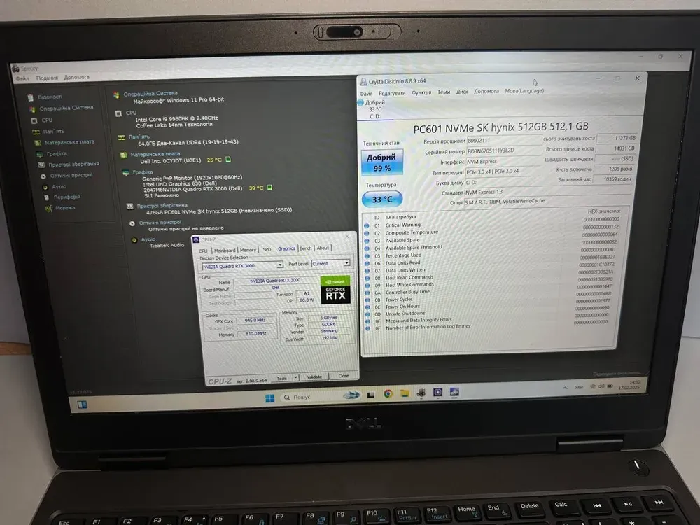 - Графіка: дискретна nVidia Quadro RTX 3000, 6 GB GDDR6, 192-bit
