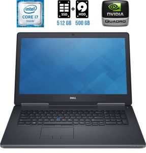 Мобільна робоча станція Dell Precision 7710 / 17.3" (1920x1080) IPS / Intel Core i7-6820HQ (4 (8) ядра по 2.7 - 3.6 GHz) / 16 GB DDR4 / 512 GB SSD M.2 + 500 GB HDD / nVidia Quadro M4000M, 4 GB GDDR5, 256-bit / WebCam / HDMI б/в