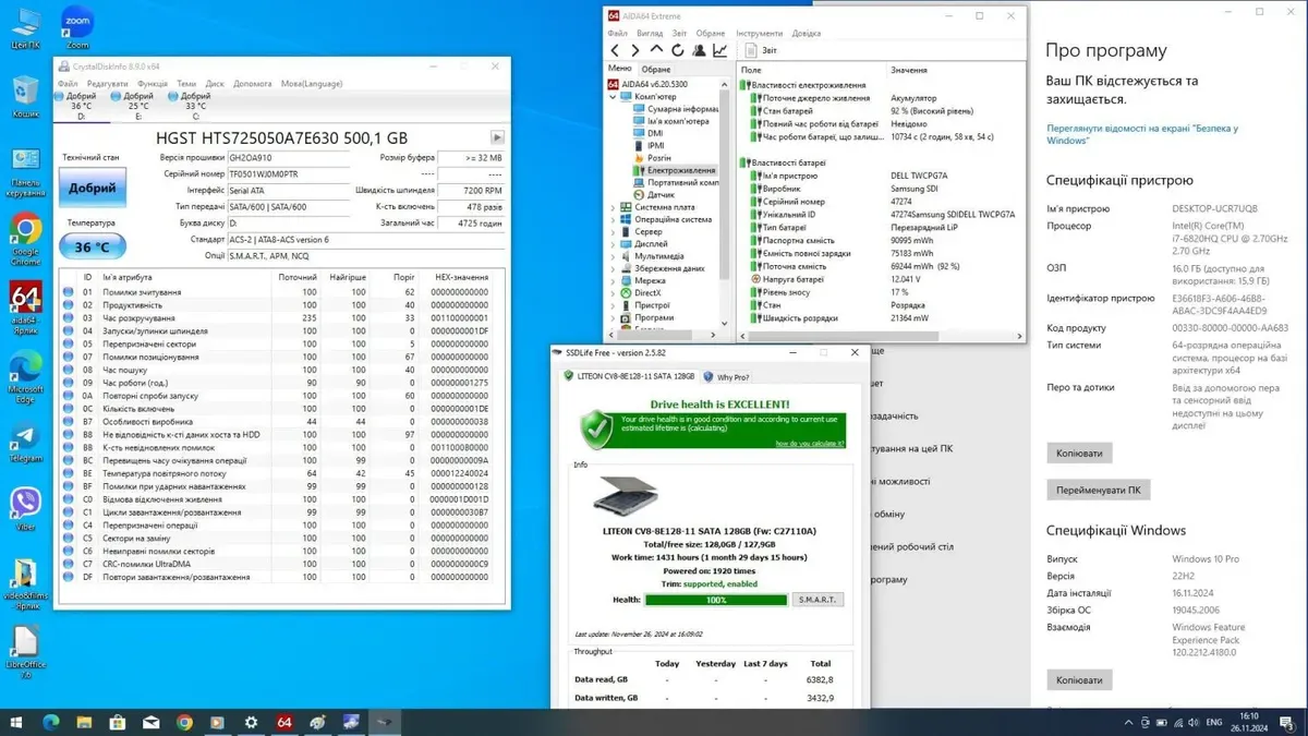- Постійна пам'ять: 2x 128 GB SSD M.2 + 500 GB HDD