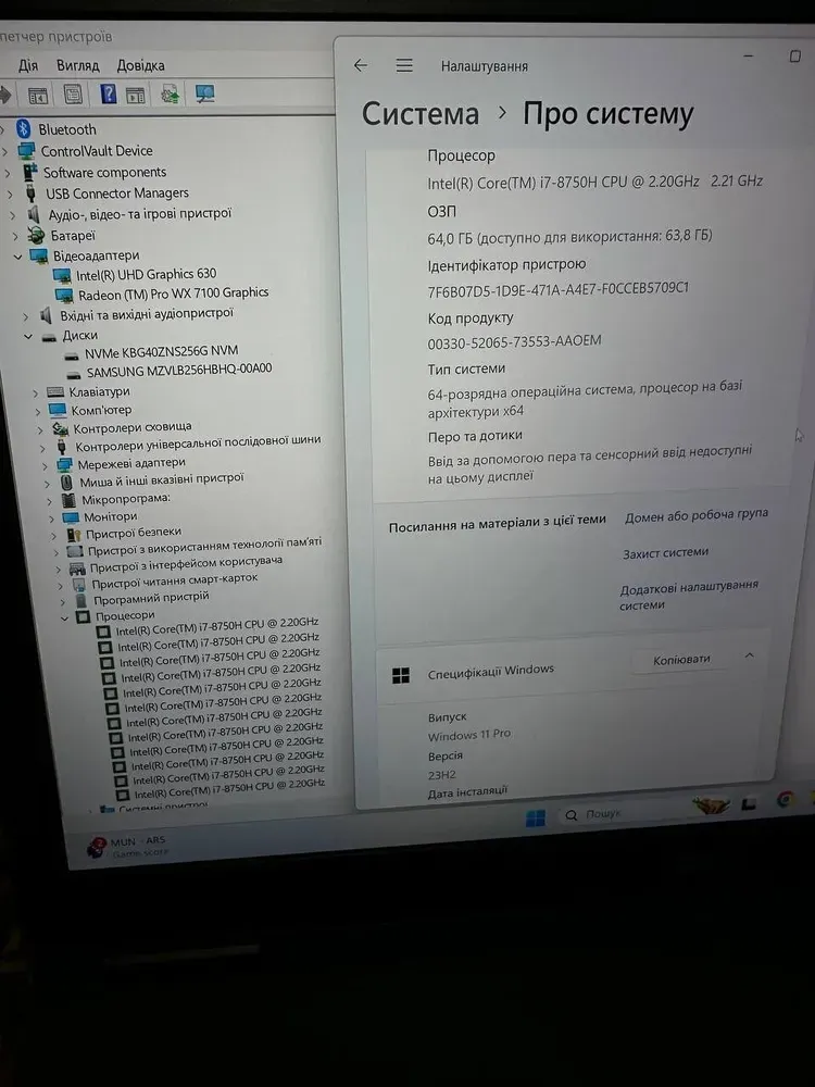- Процесор: Intel Core i7-8750H (6 (12) ядра по 2.2 - 4.1 GHz), 9 MB Smart Cache