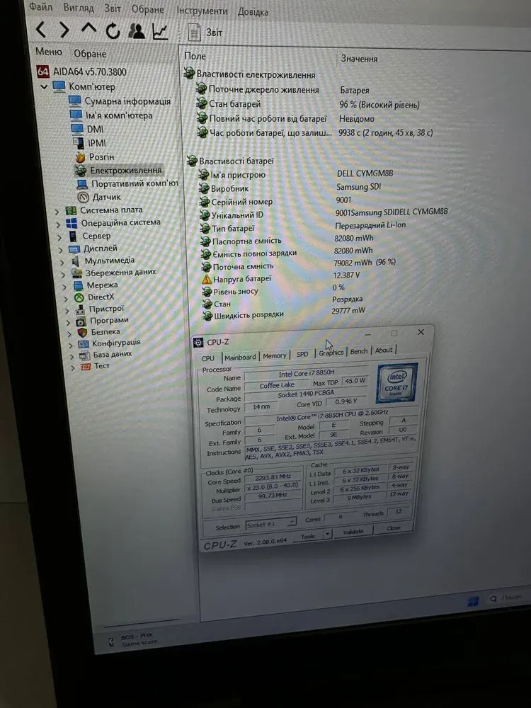 - Процесор: Intel Core i7-8750H (6 (12) ядер по 2.2 - 4.1 GHz), 9 MB Smart Cache