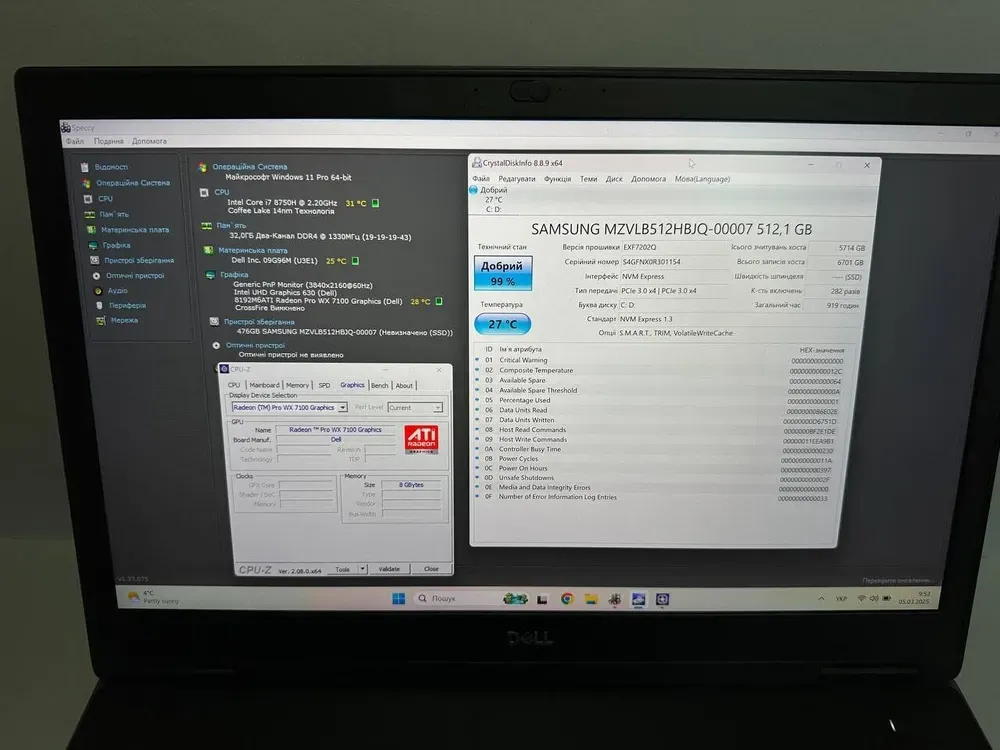 - Графіка: дискретна AMD Radeon Pro WX 7100, 8 GB GDDR5, 256-bit