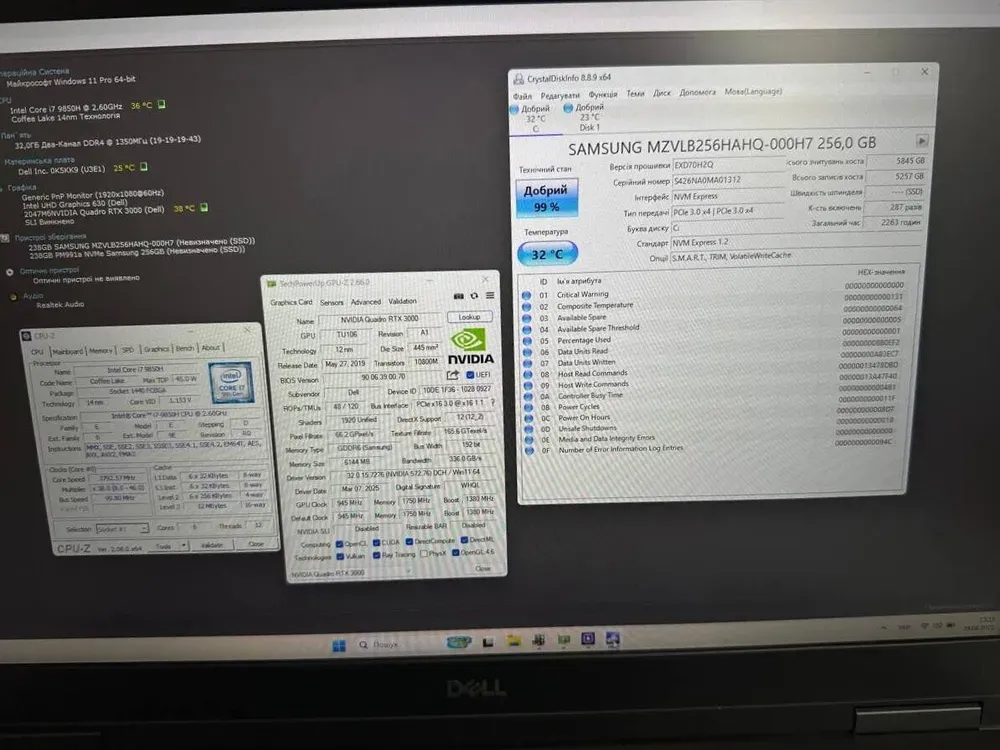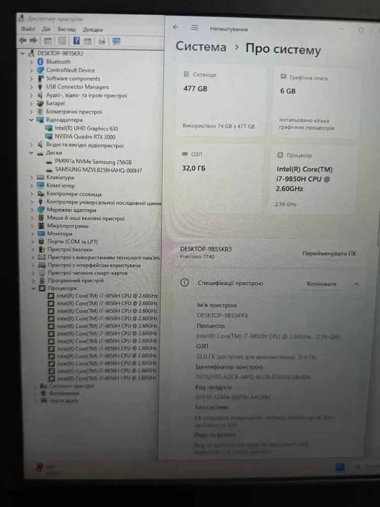 - Графіка: дискретна nVidia Quadro RTX 3000, 6 GB GDDR6, 192-bit