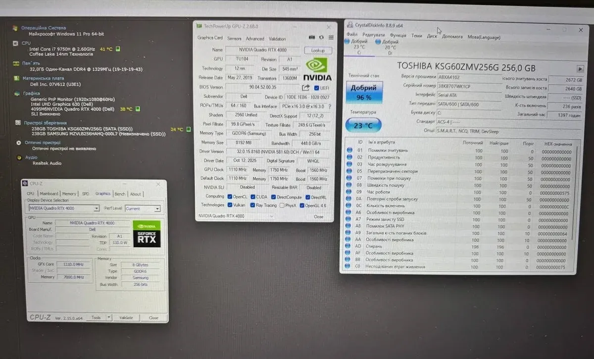 - Графіка: дискретна nVidia Quadro RTX 4000, 8 ГБ GDDR6, 256-біт