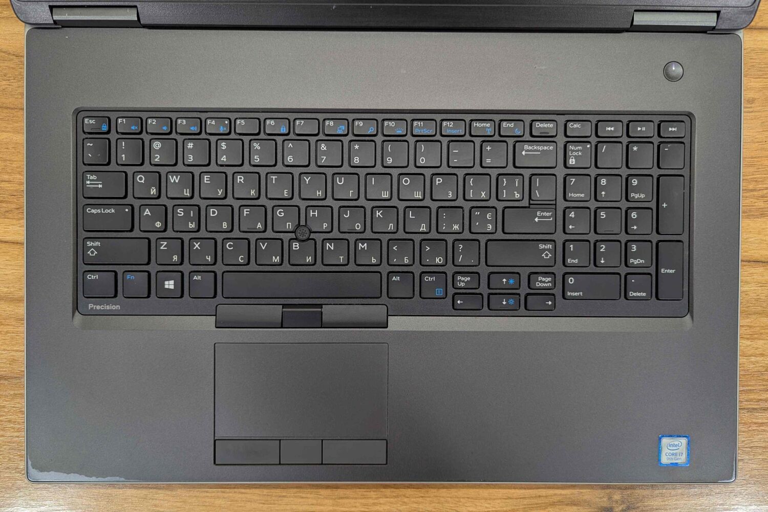 Мобільна робоча станція Dell Precision 7740 з екраном 17,3" (1920x1080) IPS на базі процесора Intel Core i7-9750H і оперативною пам'яттю 64 GB DDR4, оснащена дискретною відеокартою nVidia Quadro RTX 4000 8 GB для роботи з графікою та інших завдань.