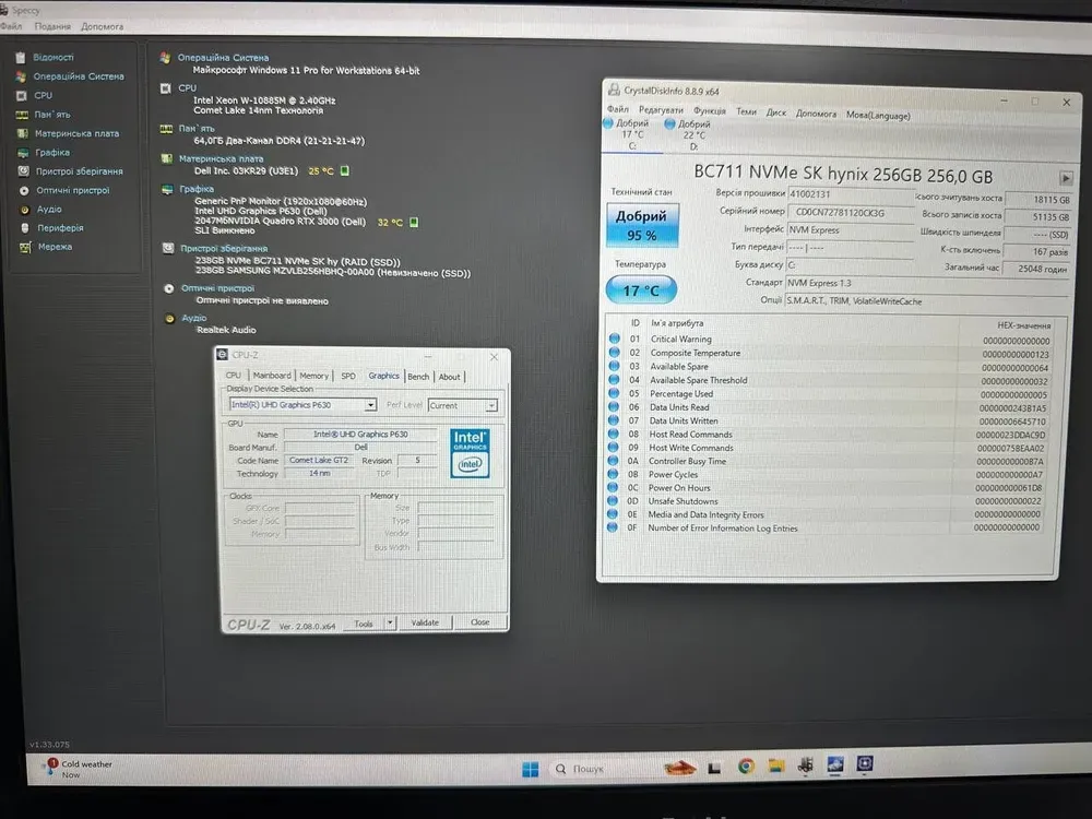 - Процесор: Intel Xeon W-10885M (8 (16) ядер по 2.4 - 5.3 GHz), 16 MB Smart Cache