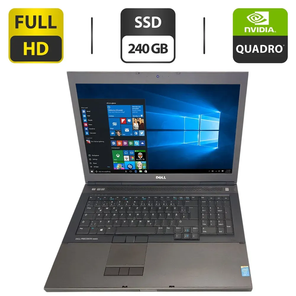 Мобільна робоча станція Dell Precision M6800 / 17.3" (1920x1080) TN / Intel Core i7-4910MQ (4 (8) ядра по 2.9 - 3.9 GHz) / 32 GB DDR3 / 240 GB SSD / nVidia Quadro K3100M, 4 GB GDDR5, 256-bit / WebCam б/в