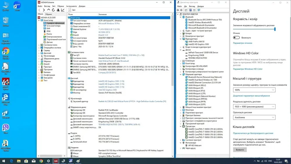 - Екран (діагональ, роздільна здатність, тип матриці): 14" (1920x1080) IPS, матовий