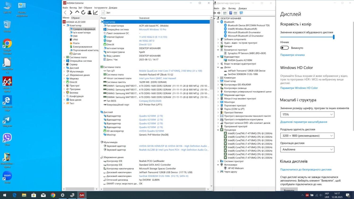 Мобільна робоча станція HP ZBook 15 G2 з екраном 15,6" (3200x1800) IPS на базі 4-ядерного процесора Intel Core i7-4710MQ і дискретною відеокартою nVidia Quadro K2100M 2 GB для ігор і роботи з мультимедіа