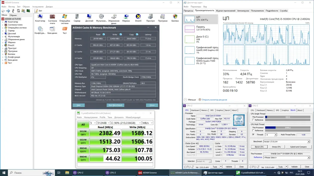 - Процесор: Intel Core i5-9300H (4 (8) ядра по 2.4 - 4.1 GHz), 8 MB Smart Cache