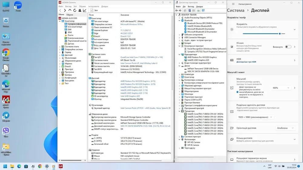 - Процесор: Intel Core i7-8665U (4 (8) ядра по 1.9 - 4.8 GHz), 8 MB Smart Cache