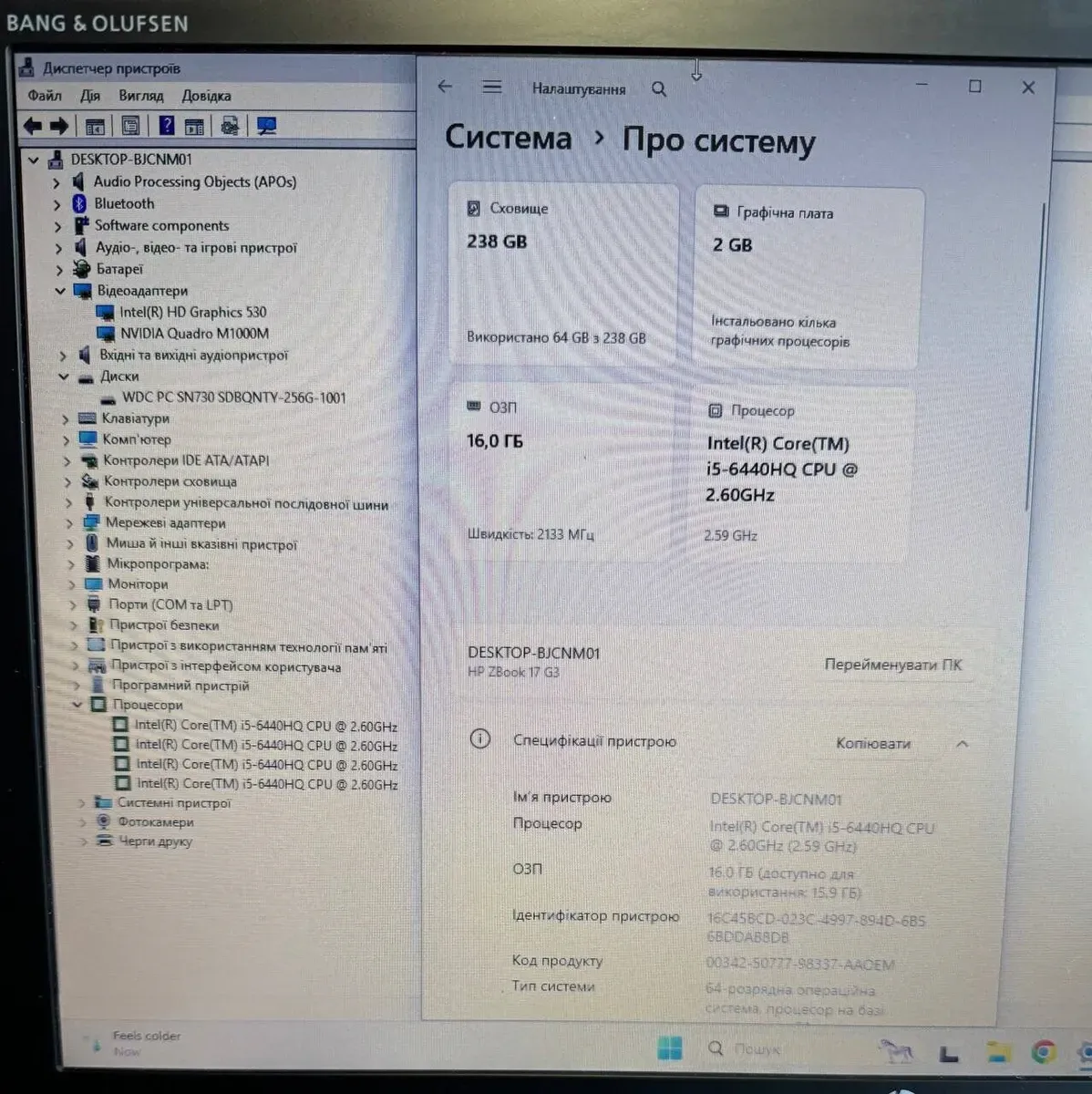 - Графіка: дискретна nVidia Quadro M1000M, 2 ГБ GDDR5, 128-біт; інтегрована Intel HD Graphics 530 (до 1792 МБ з ОЗУ)