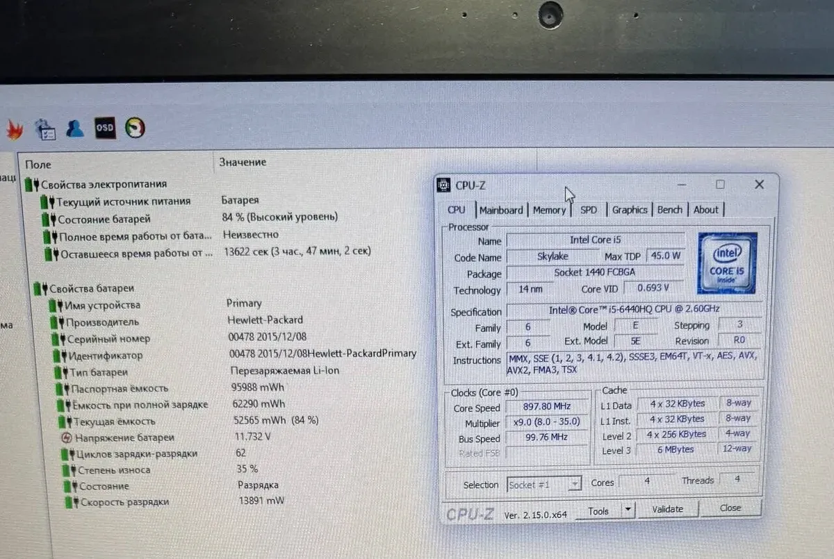 - Процесор: Intel Core i5-6440HQ (4 ядра з тактовою частотою 2,6–3,5 ГГц), 6 МБ Smart Cache
