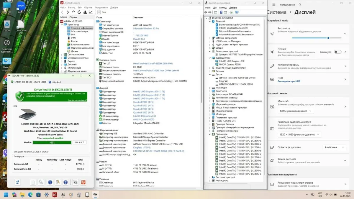 - Графіка: дискретна nVidia Quadro P2000, 4 ГБ GDDR5, 128-біт
