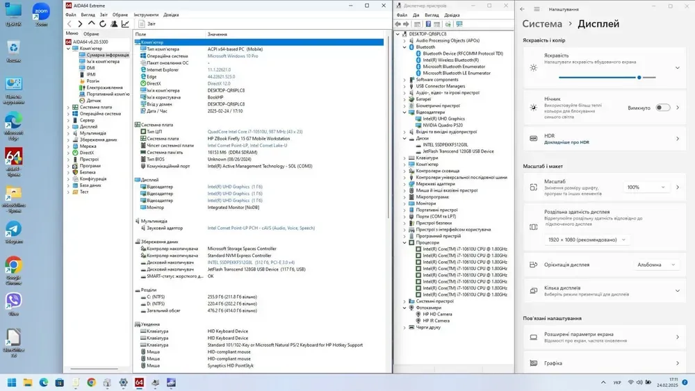 - Графіка: дискретна nVidia Quadro P520, 4 GB GDDR5, 64-bit