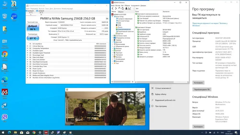- Процесор: Intel Xeon W-10855M (6 (12) ядер по 2.8 - 5.1 GHz), 12 MB Smart Cache