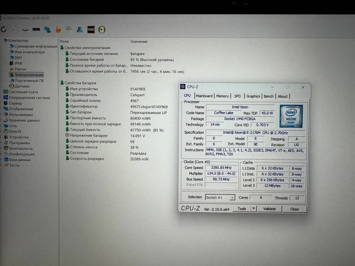 - Процесор: Intel Xeon E-2176M (6 (12) ядер по 2,7 - 4,4 ГГц), 12 МБ Smart Cache