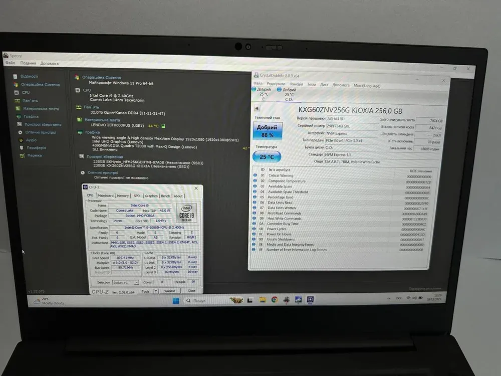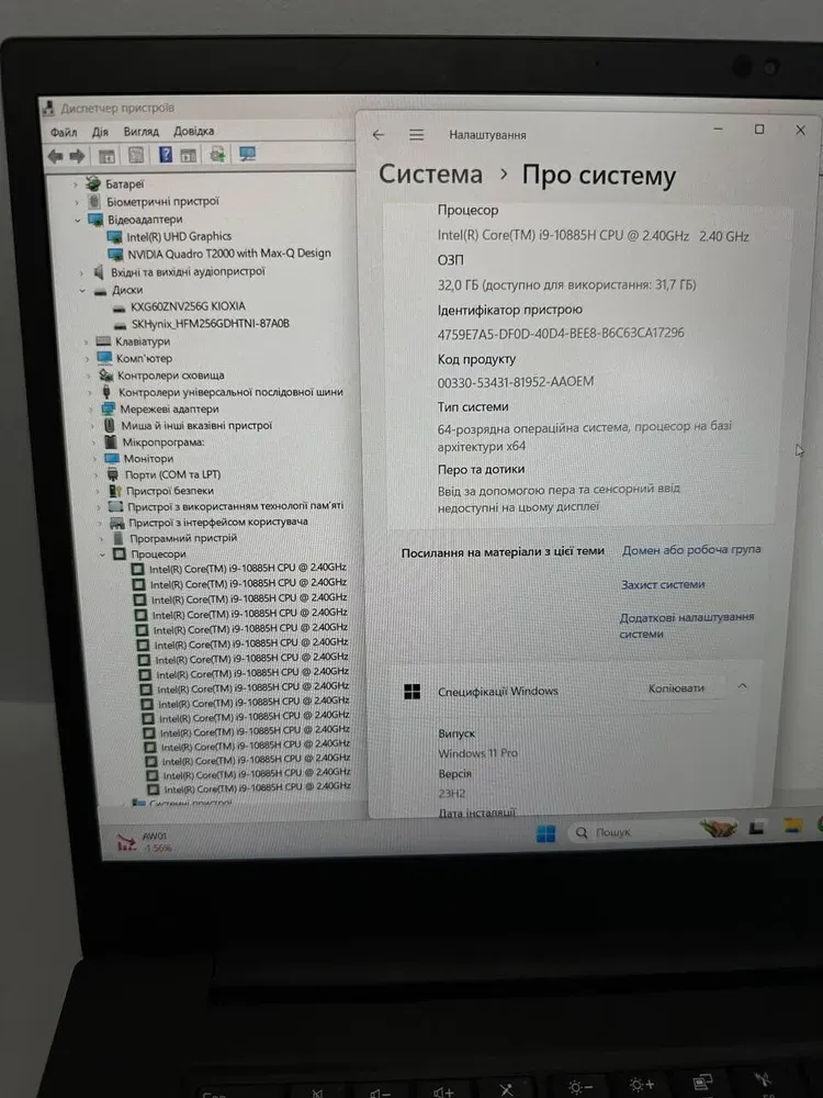 - Процесор: Intel Core i9-10885H (8 (16) ядра по 2.4 - 5.3 GHz), 16 MB Smart Cache